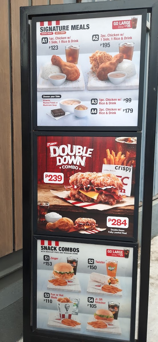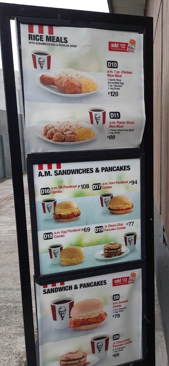 KFC at Governor's Drive, General Mariano Alvarez, Cavite, is a haven for chicken lovers craving classic and innovative flavors. The menu boasts the iconic bucket of crispy, flavorful fried chicken that never fails to evoke nostalgia and moments shared with family and friends. Beyond the famous chicken, KFC offers a variety of well-loved sides like creamy Mushroom Soup, thick-cut Crispy Fries, and their rich, indulgent Large Gravy that perfectly complements every bite.
